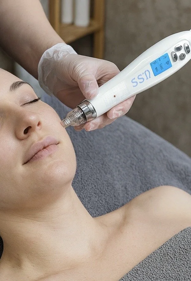 Creates controlled micro-injuries in the skin using fine needles.