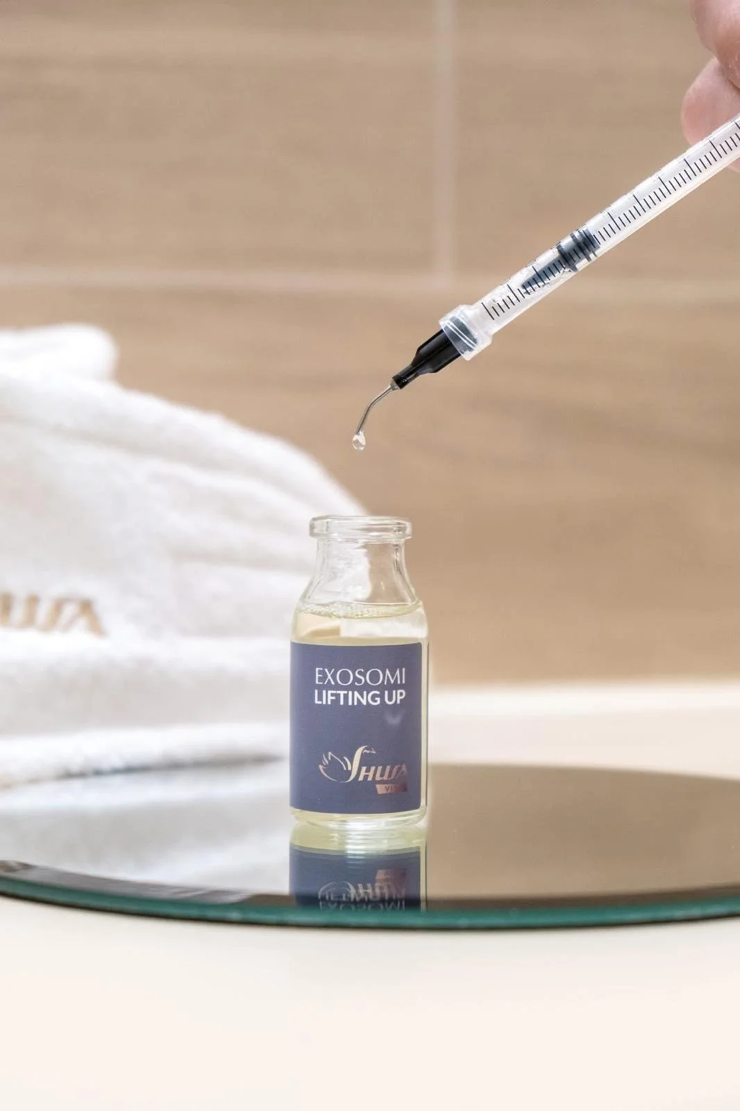Exosomes are tiny, bioactive vesicles naturally released by stem cells. They act as messengers, delivering growth factors, peptides, and genetic materials to skin cells—stimulating regeneration, collagen production, and cellular communication.